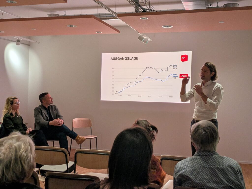 Am letzten Montag hat die SP Dübendorf die Veranstaltung «Wie die Mietexplosion stoppen?» im reformierten Kirchgemeindezentrum durchgeführt. Nach einer Einordnung in aktuelle lokale und nationale Entwicklungen von Stadtrat Ivo Hasler und Kantonsrat & Ökonom Tobi Langenegger diskutierten zahlreiche Interessierte unter der Moderation von Gemeinderätin Sofia van Moorsel, wie wir die aktuelle Wohnkrise in Dübendorf bewältigen können. Im Zentrum standen die Resultate unserer grossen Wohnumfrage, an der sich fast 700 Dübendorfer:innen beteiligt haben.
